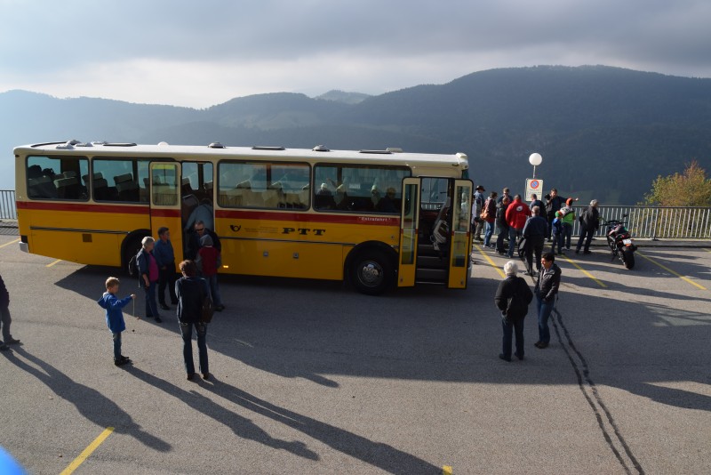 Bi idealem Reisewätter isch am Sunnti dr 27.Septämber 2015 üsi Jodlerreis ufem Programm gstange. Mir hei üs aui gfröit u si gspannt gsi wo üs äch dr Kurt Jacquemai wird härefüehre. Aues wo mir hei gwüsst isch; mir fahre is Ungwüsse, Kafihaut im Irgendwo, ab Parkplatz X gits e Fuessmarsch u de e Füehrig mit Apéro u de wärde mir vo Parkplatz X wyterfahre bis Parkplatz Y, wo mir de Ässä , gmüetlech zämäsi, singe u üs chöi bewege. Genau eso isch üsi Reis de ou düregfüehrt worde. Am 07.45 Uhr si mir mitem Poschtouto vom Richu Aebi gstartet i Richtig Oensingen, Passwang wo mir e Kafihaut ygschaute hei u de ou no dr letscht isch erwachet wo öppe no chly müed isch gsi. D'Sunne het sech bereits do die gröschti Müeh gäh zum dür d'Wuuche dürezcho. Wyter simer gäge Wahlen, Laufen nach Kleinlützel. Für mängs vo üs isch das nid grad eso e bekannti Gägend gsi aber dr Kurt het se üs de nöcher brocht.. Auso ahcho uf däm Parkplatz X si mir düre Waud ufglüffe u de zumene Bunker cho vom Bunkerverein Kleinlützel. I zwo Gruppe hei mir dert einiges erfahre übere 2. Wäutchrieg, wie sie de dä Bunker boue hei , wie sie hei d'Gränze bewacht u wie u wo sie de mit dene Gwehr u Kanone hei chönne Ziele u schiesse. Grad usprobiert hei mirs nid, u ou im 2. Wäutchrieg hei sie die Abwehr nie bruucht u es isch ke Schuss gfaue. Sehr Ydrücklech isch d'Füehrig dür dä Bunker, vo usse so unschynbar u im Innere so viu Abwehr.